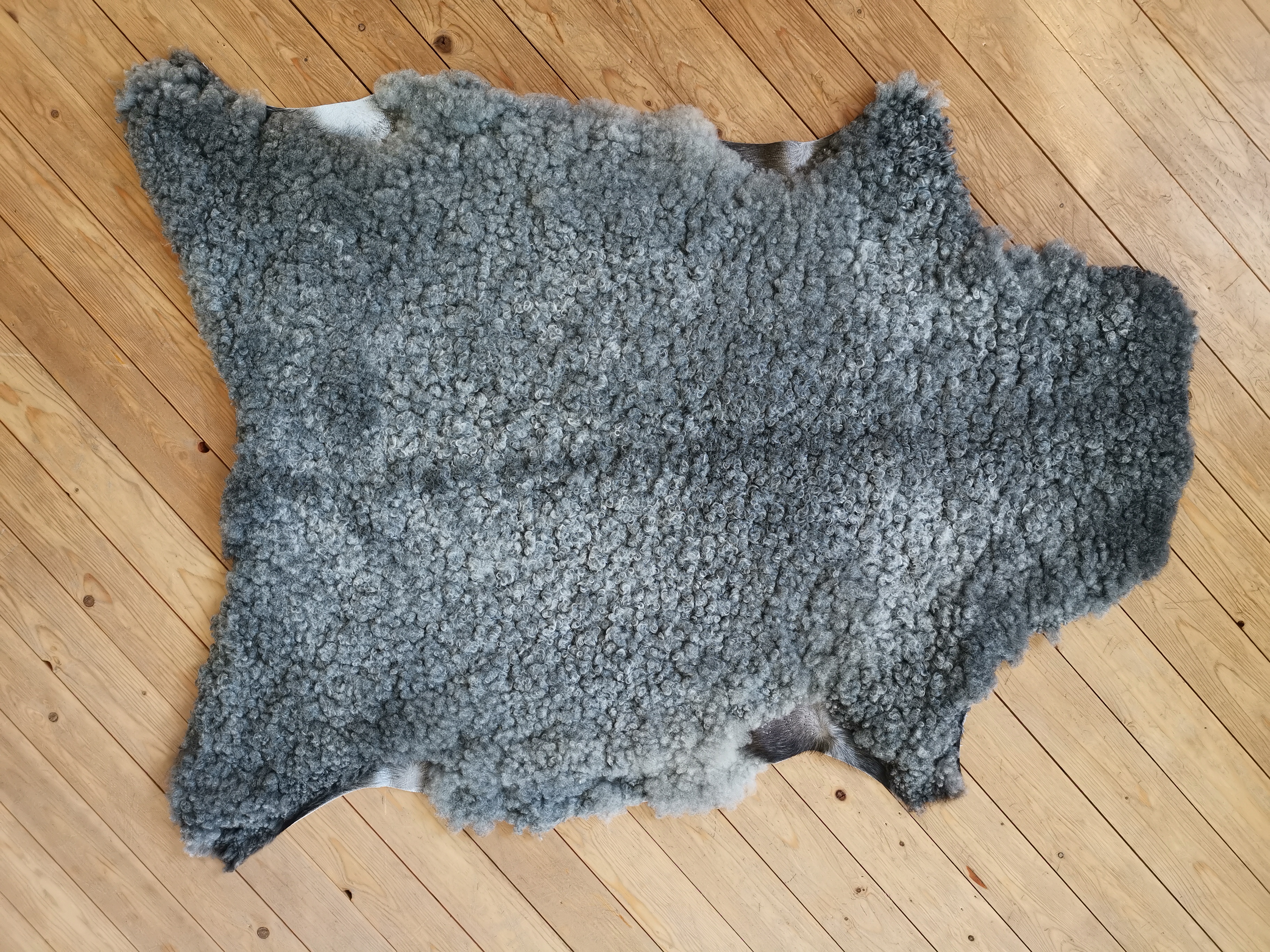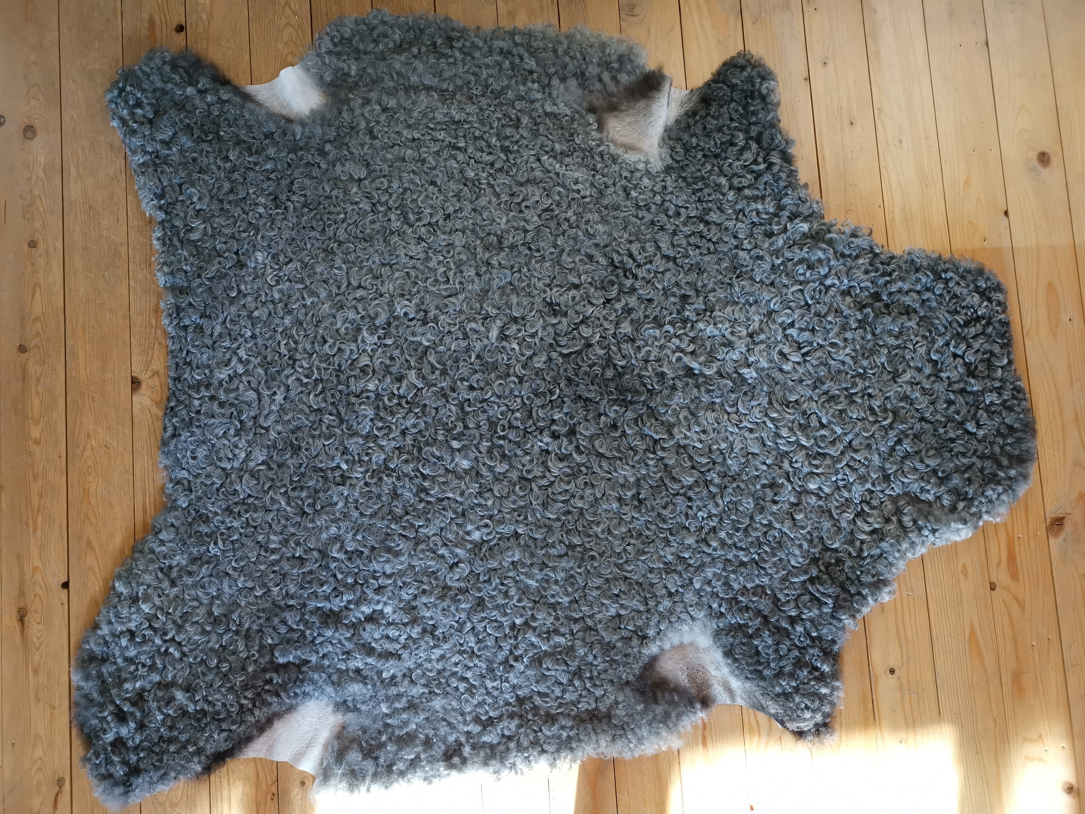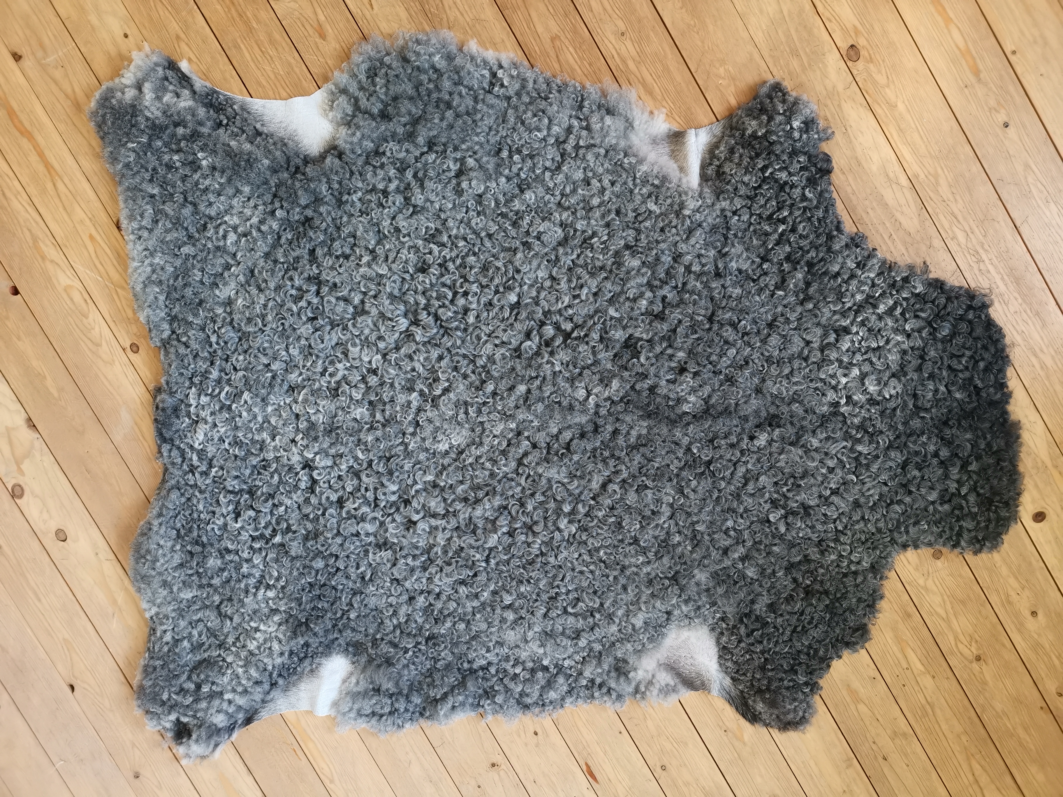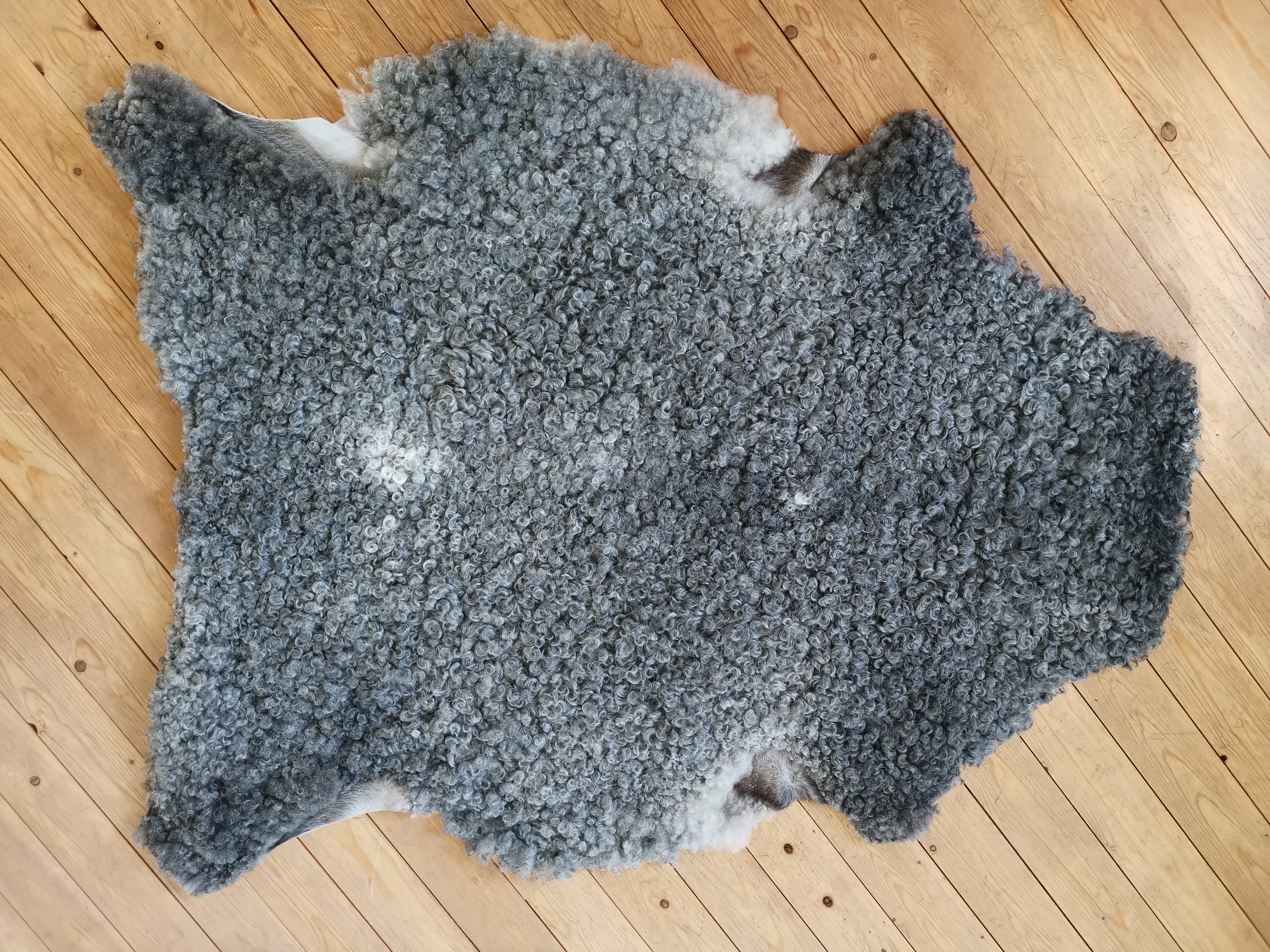Rasen är Gotlandsfår, vilket ger ett högkvalitativt, lockigt skinn i grå nyanser.