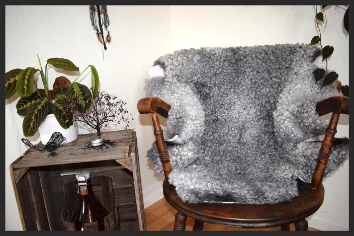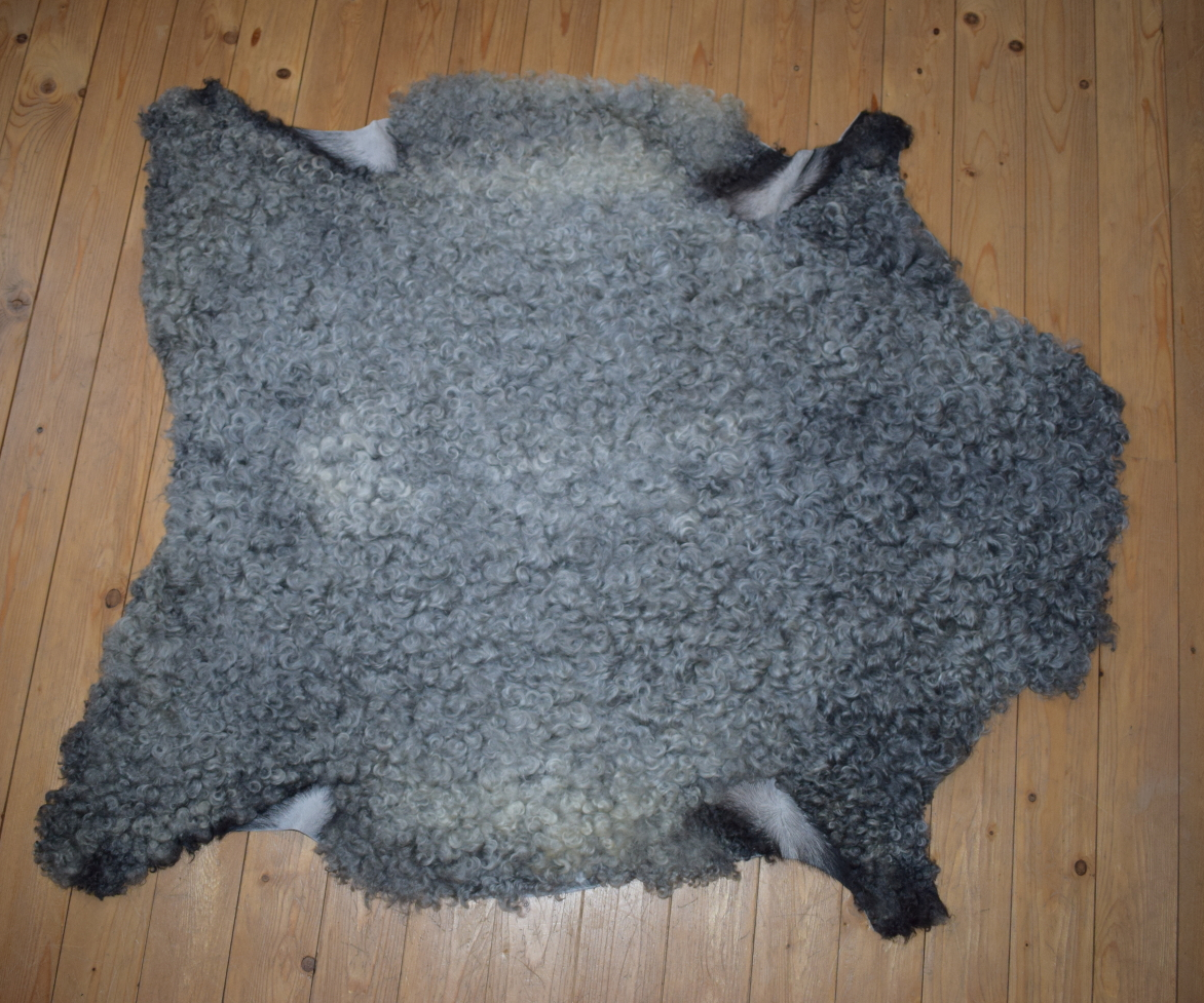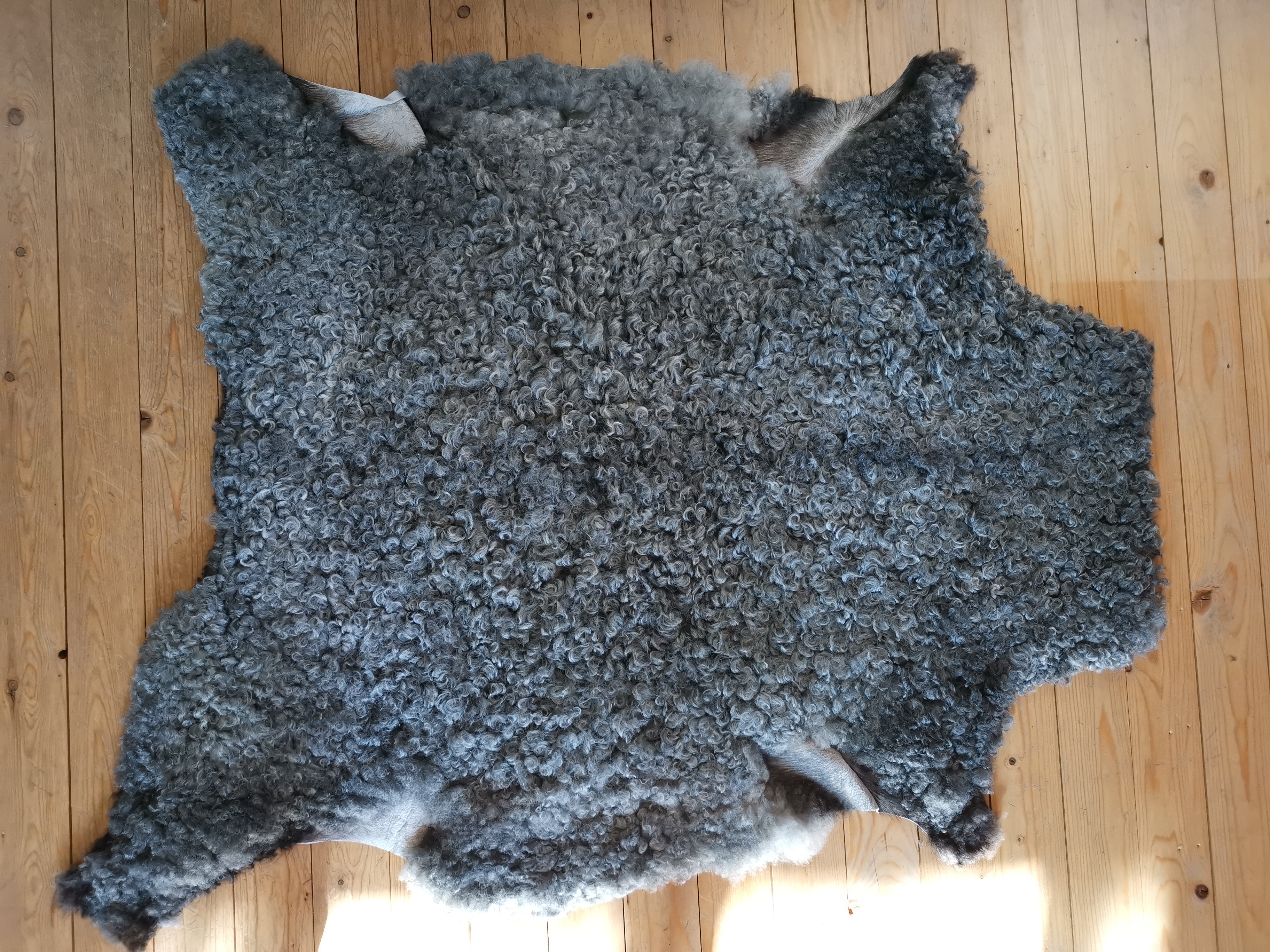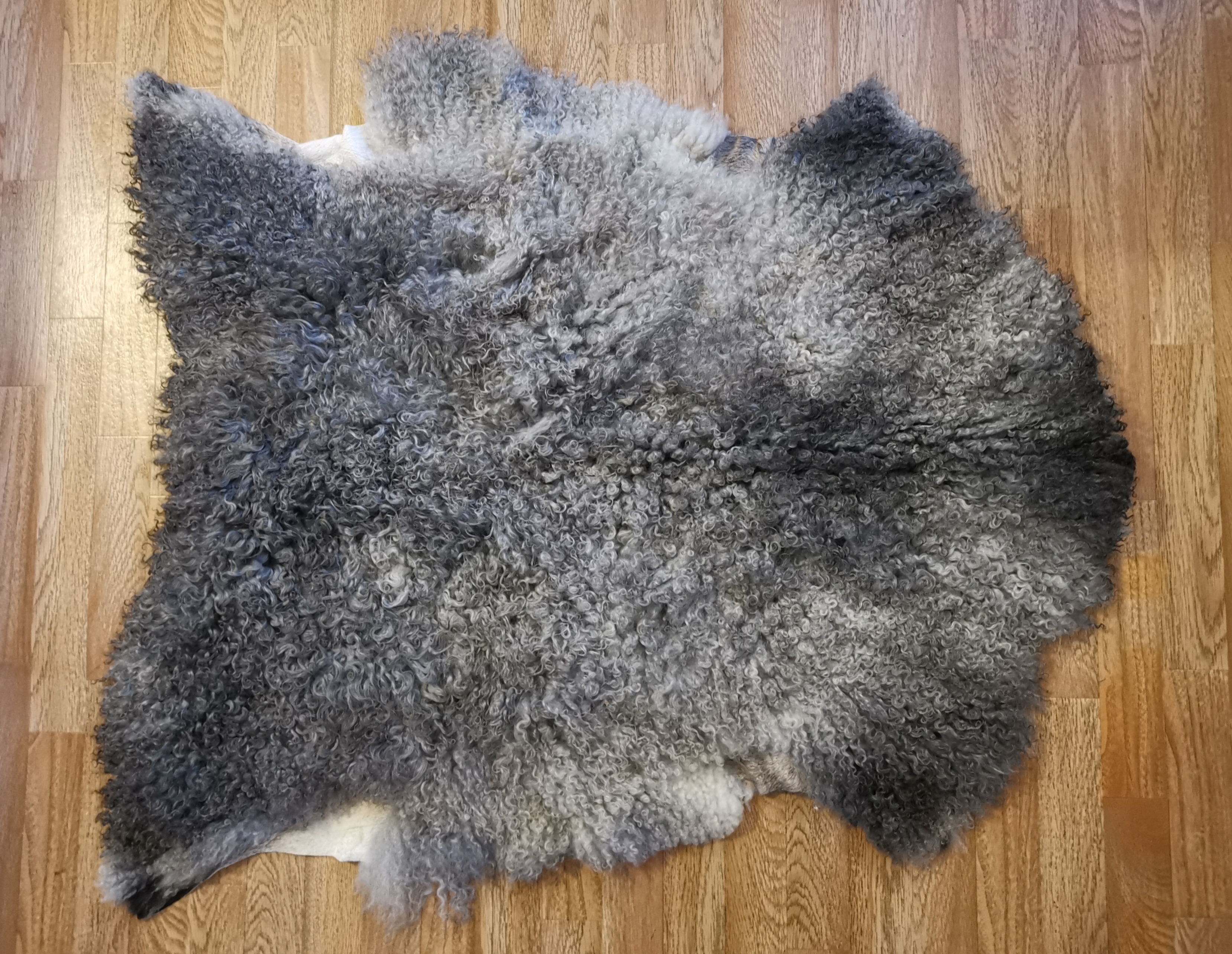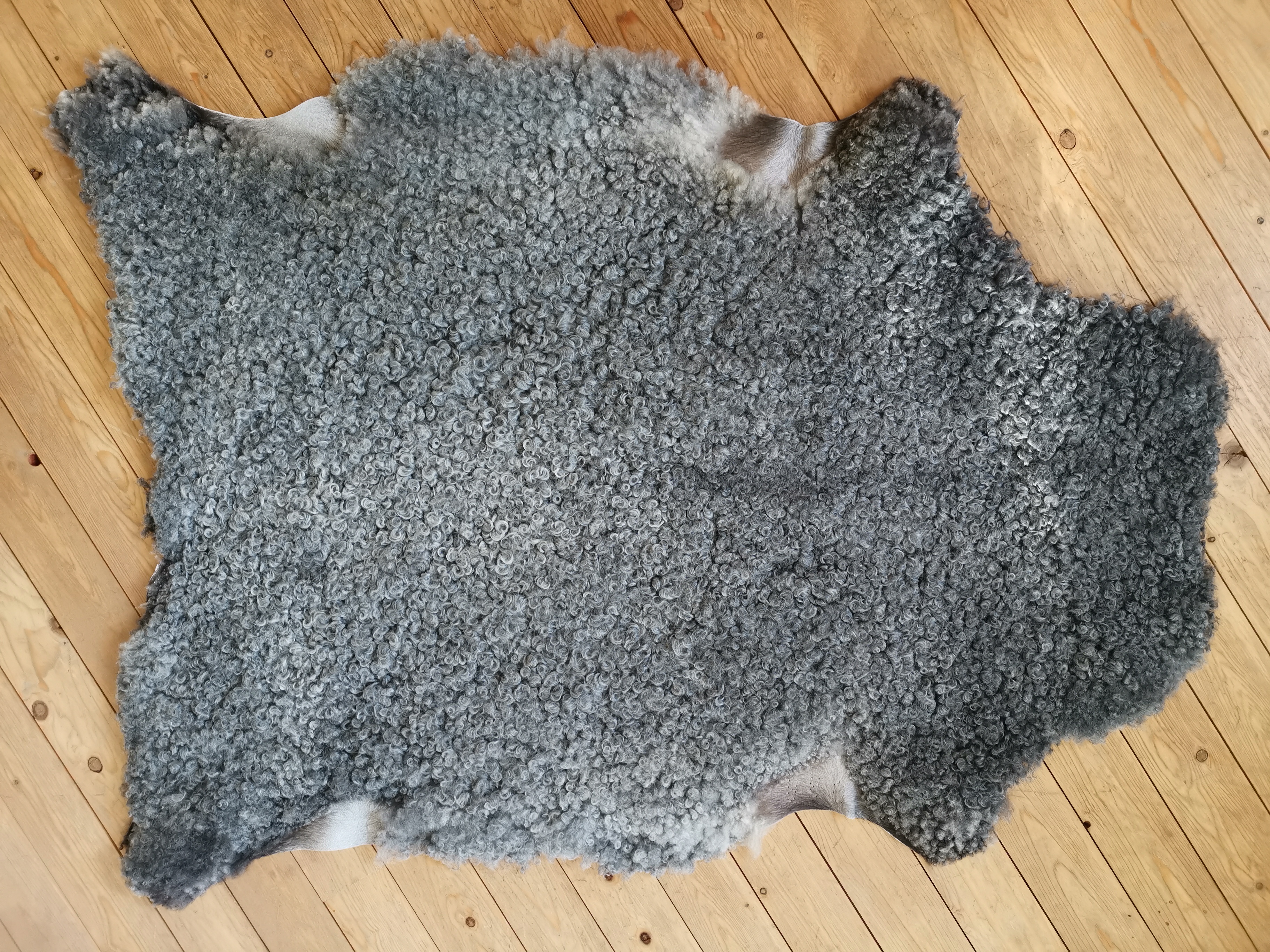 Rasen är Gotlandsfår, vilket ger ett högkvalitativt, lockigt skinn i grå nyanser.