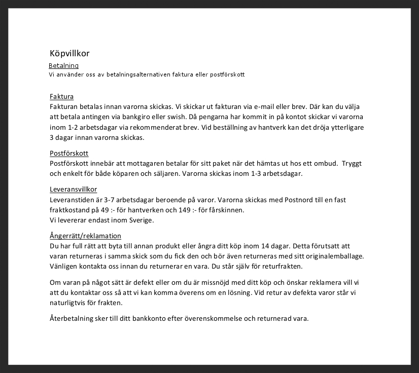Detta är endast visningsbilder för att se hur skinnen ser ut, så det är inte säkert att just det skinnet finns inne. Du är välkommen att kontakta oss vid visning, bilder och mått.